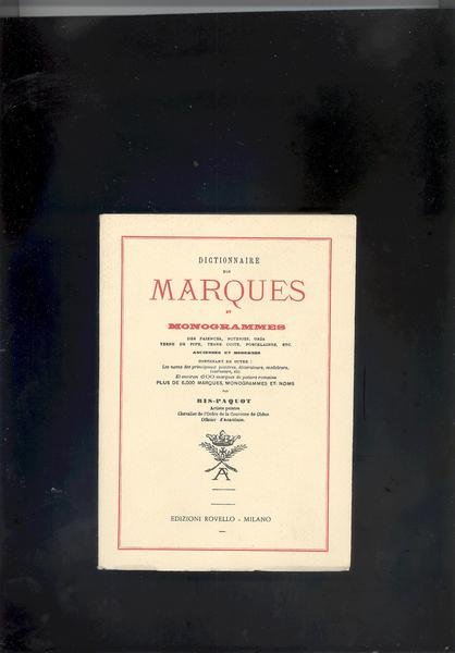 DICTIONNAIRE DES MARQUES ET MONOGRAMMES DES FAIENCES, POTERIES, GRES, TERRE DE PIPE, TERRE CUITE, PORCELLAINES,ETC. ANCIENNES ET MODERNES.