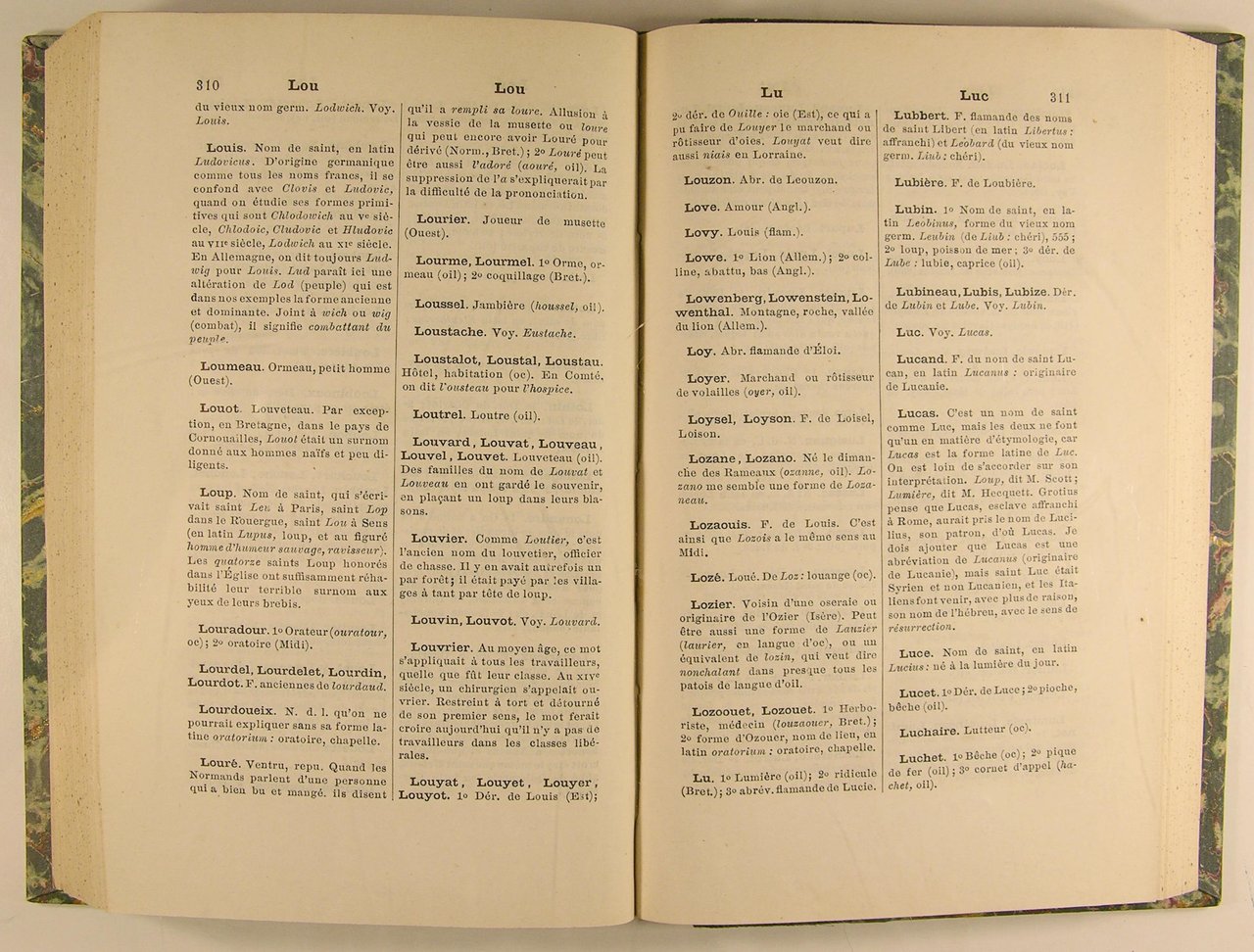 Dictionnaire des Noms contenant la recherche étymologique des formes anciennes de 20,200 noms relevés sur les Annuaires de Paris.