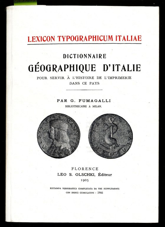 Dictionnaire géographique d'Italie. Pour servir à l'histoire de l'imprimerie dans ce pays