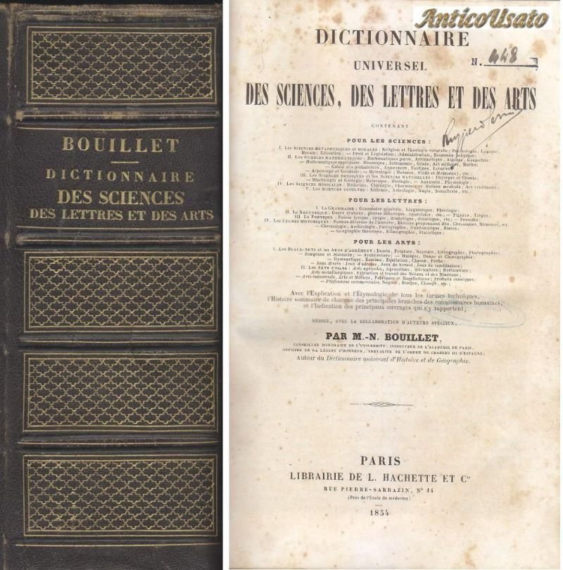 DICTIONNAIRE UNIVERSEL DES SCIENCES LETTRES ET ARTS Bouillet 1854 libro antico