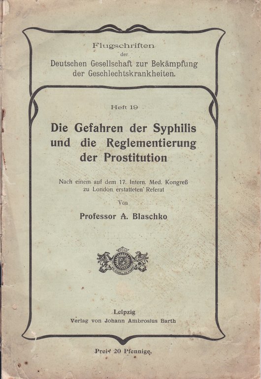 Die Gefahren der Syphilis und die Reglementierung der Prostitution.