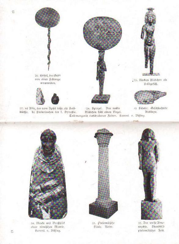 In-16°, legatura editoriale in tutta tela con titoli e vignetta al piatto, pp. VIII - 87(1) e 31(3) di catalogo editoriale; all'inizio, prima delle pp. in numeri arabi, 22 pagine in carta patinata, con 58 illustrazioni fotografiche in nero. Friedrich Wilhelm von BISSING (Potsdam, 1873 - Oberaudorf, 1956) è stato un egittologo tedesco. Studiò filologia classica, archeologia, egittologia e storia dell'arte a Bonn e a Berlino, ottenendo il dottorato nel 1896 con la tesi 'De tabula quam dicunt statistica Tuthmosis III commentatio'. Dopo la laurea, trascorse dei giorni in Egitto, lavorando come scavatore. Nel 1900 riceve la sua abilitazione presso l'Università di Monaco, dove successivamente conseguì gli incarichi di professore associato (1905) e professore ordinario (1906). Dal 1922 fino al suo ritiro nel 1926, fu professore presso l'Università di Utrecht.