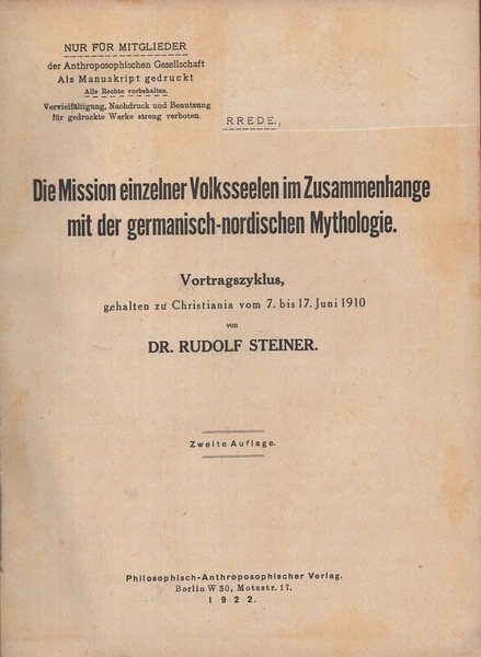 Die Mission einzelner Volksseelen im Zusammenhange mit der germanisch-nordischen Mythologie