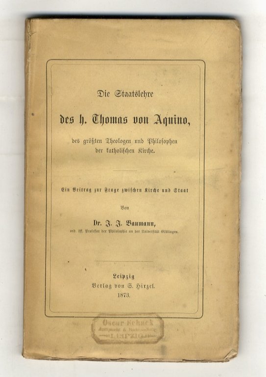 Die Staatslehre des H. Thomas von Aquino, des Grössten Theologen und Philosophen der Katholischen Kirche.
