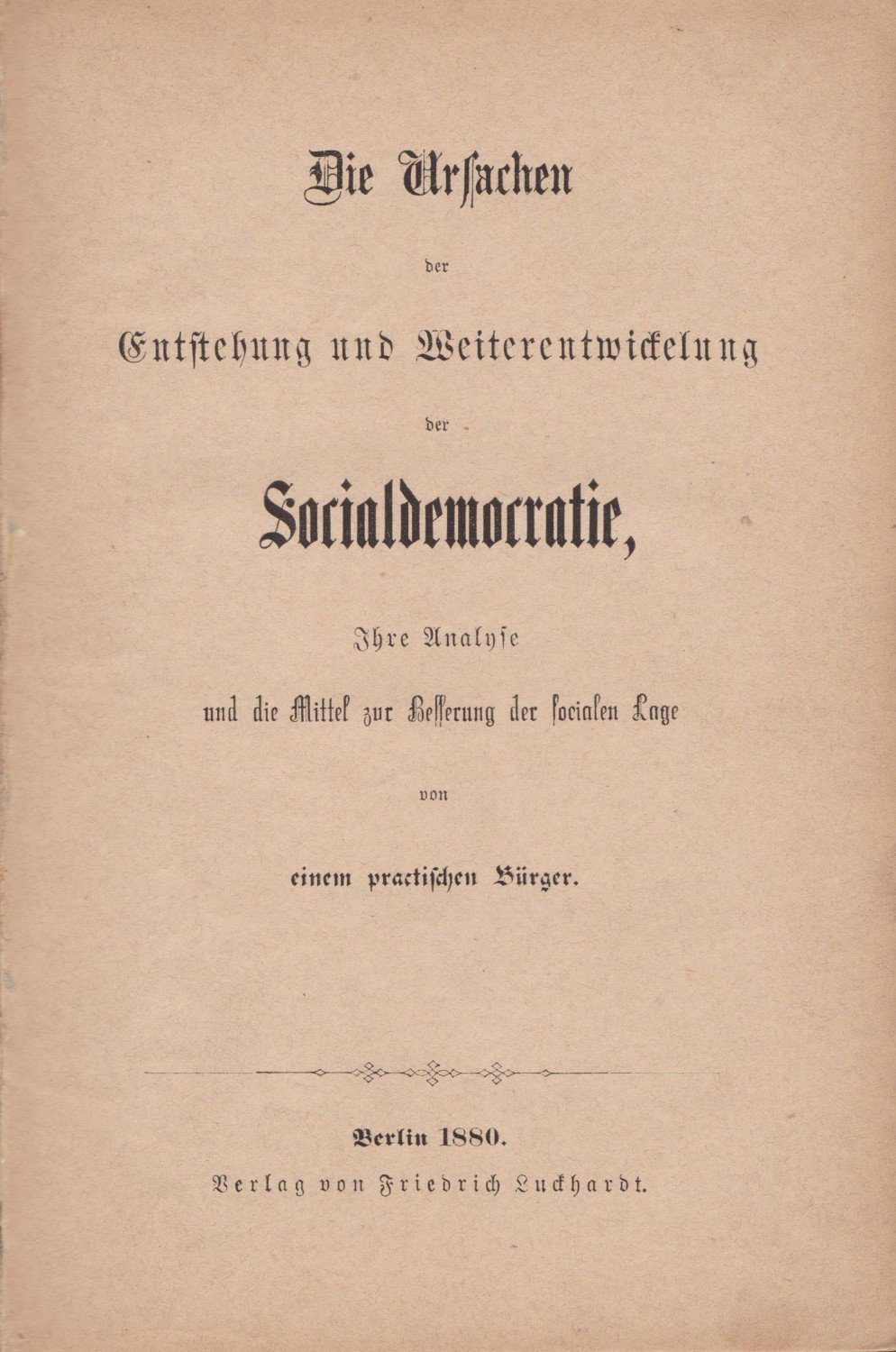 Die Ursachen der Entstehung und Weiterentwickelung der Socialdemocratie, Ihre Analyse und die Mittel zur Besserung der socialen Lage von einem practischen Bürger.