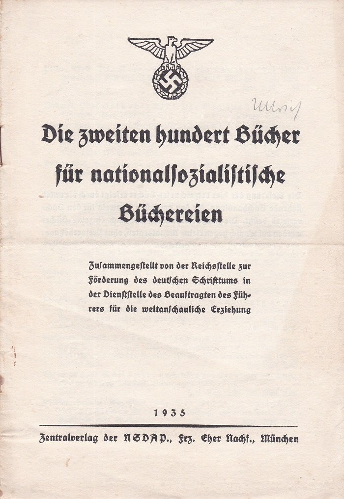 Die zweiten hundert Bücher für nationalsozialistische Büchereien.