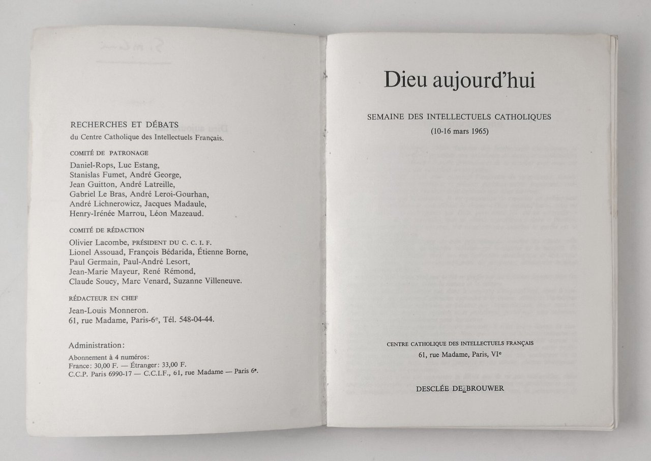 DIEU AUJOURD'HUI 1965 Descleè De Brouwer semaine des intellectuels catholiques