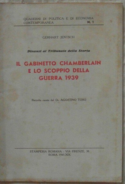 Stamperia Romana, 1941. In - 8, brossura, pp. 32. Collana Quaderni di Politica e di Economia Contemporanea numero 1. Brossura esterna con macchie, pagine interne in ottimo stato