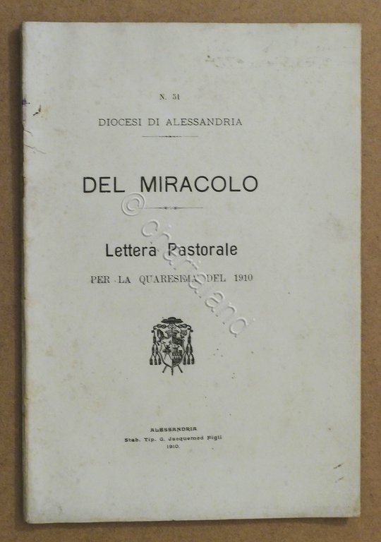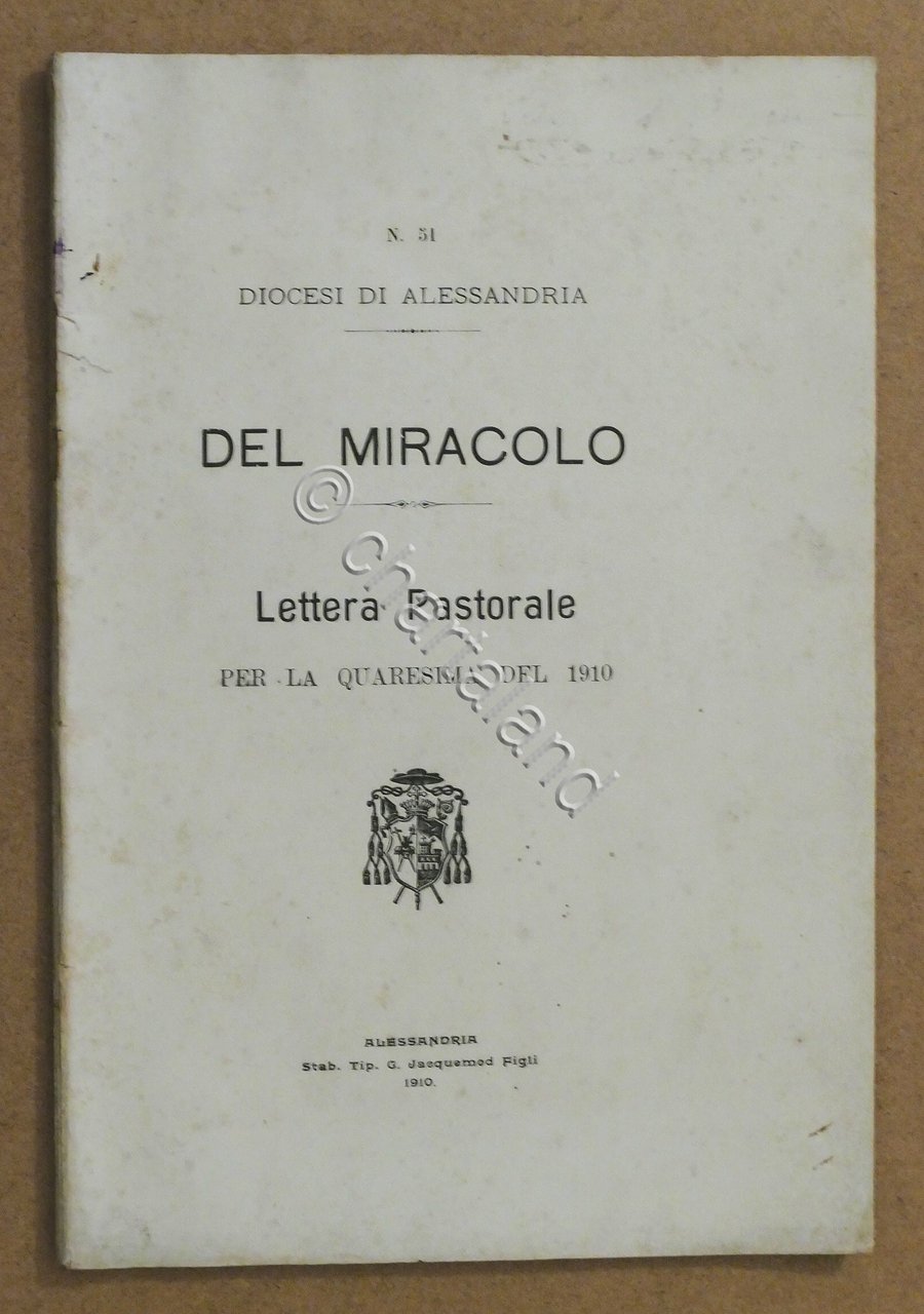 Diocesi di Alessandria - Del Miracolo - Lettera Pastorale per la Quaresima del 1910 - 1^ ed. 1910 Pag. 67 Copertina morbida - Testo in italiano Condizioni buone.