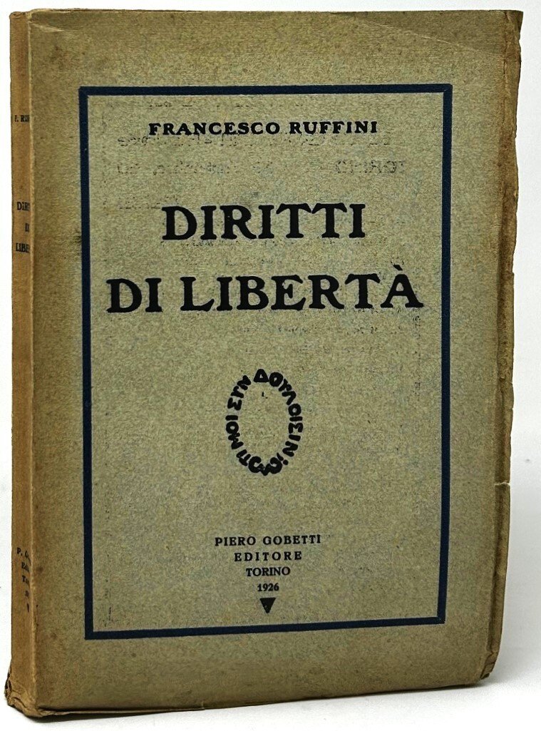 >in-16, pp. 229, (3), brossura editoriale. Esemplare in perfetto stato di conservazione. I Diritti di libertà (1926) di Francesco Ruffini è una coraggiosa testimonianza contro l'eliminazione delle libertà fondamentali ma anche un importante contributo di storia e di teoria del diritto costituzionale. Francesco Ruffini senatore e professore di Diritto ecclesiastico all'Università di Torino, nel 1931 rinunciò alla cattedra rifiutandosi di prestare giuramento al regime fascista.