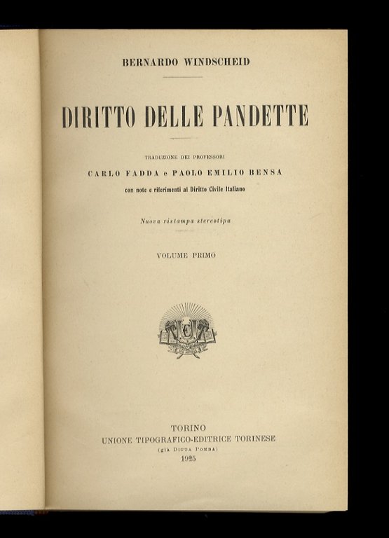 Diritto delle Pandette. Traduzione dei professori Carlo Fadda e Paolo Emilio Bensa e continuate da Pietro Bonfante con note e riferimenti al diritto civile italiano.