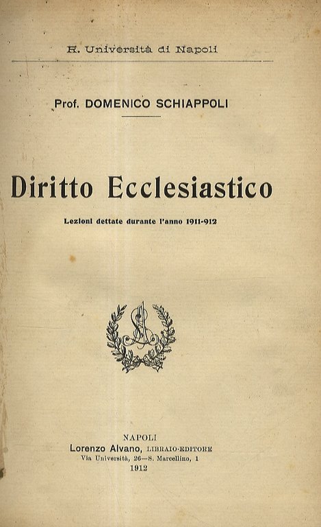 Diritto ecclesiastico. Lezioni dettate durante l'anno 1911-12.