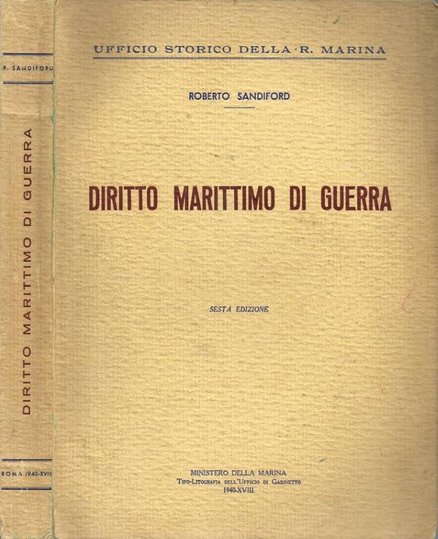 Volume del 1940 in stato discreto, coperta in cartoncino goffrato semimorbido, lievi bruniture, qualche segno del tempo, macchioline, tracce di fioritura sparsa, cerniera appena allentata, tagli e margini delle pagine leggermente ambrati, pagine in buono stato, alcune sottolineature ed appunti a matita al margine del testo, appunti a matita presenti su guardie e frontespizio, su quest'ultimo anche firma d'appartenenza. A cura dell'Ufficio Storico della R. Marina. VI edizione. Numero Pagine 372
