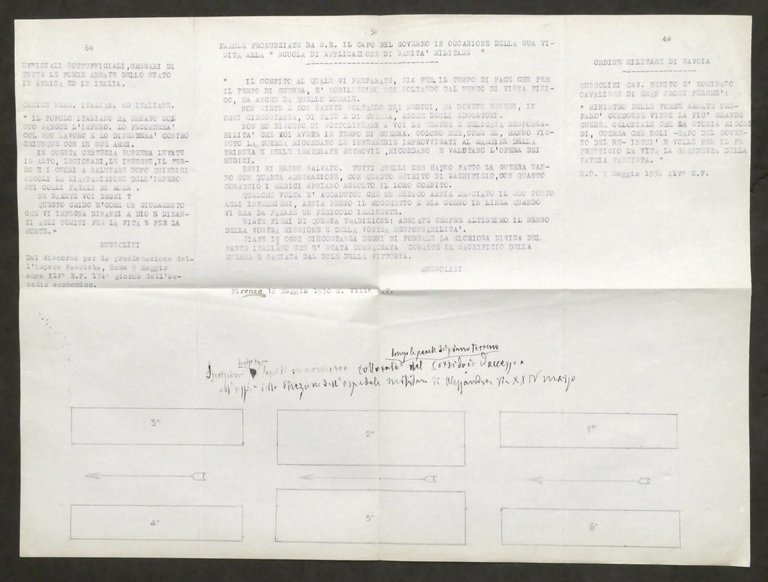 - Dal Discorso per la proclamazione dell'Impero fascista - 9 Maggio 1936- Parole pronunciate dal Capo del Governo in occasione della sua visita alla Scuola di Applicazione di Sanità, Militare - 18 Maggio 1930