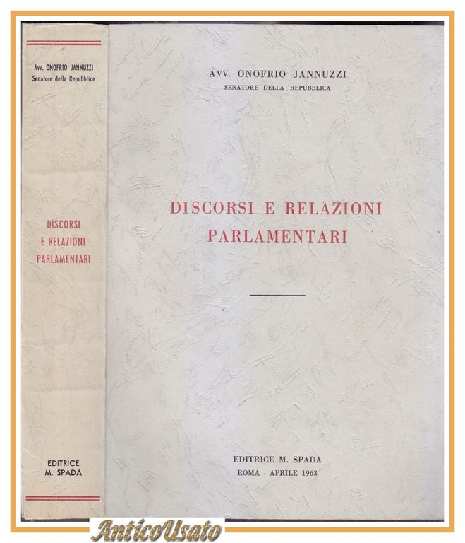 DISCORSI E RELAZIONI PARLAMENTARI di Onofrio Jannuzzi 1963 Spada libro Andria