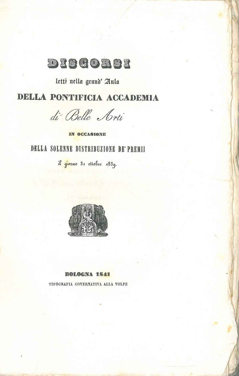 Discorsi letti nella grand'aula della Pontificia Accademia di Belle Arti in occasione della solenne distribuzione de' premi il giorno 31 ottobre 1839