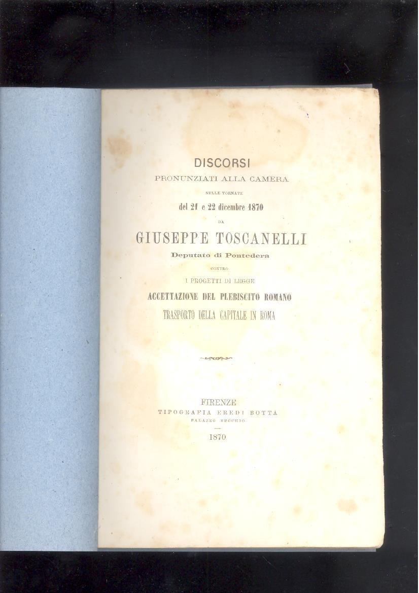 DISCORSI PRONUNZIATI ALLA CAMERA NELLE TORNATE DEL 21 E 22 DICEMBRE 1870 DA<BR>GIUSEPPE MONTANELLI DEPUTATO DI PONTEDERA CONTRO I PROGETTI DI LEGGE ACCETTAZIONE DEL PLEBISCITO ROMANO TRASPORTO DELLA CAPITALE IN ROMA.