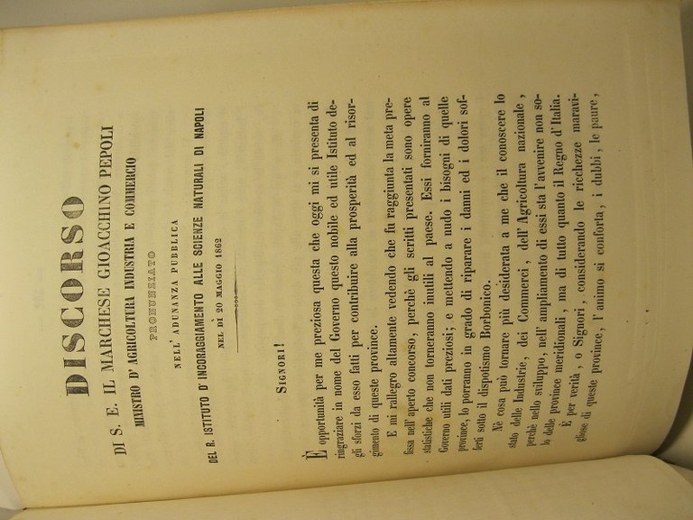Discorso di S. E. il marchese Gioacchino Pepoli minostro d'agricoltura industria e commercio pronunziato nell'adunanza pubblica del R. Istituto d'Incoraggiamento alle Scienze Naturali di Napoli