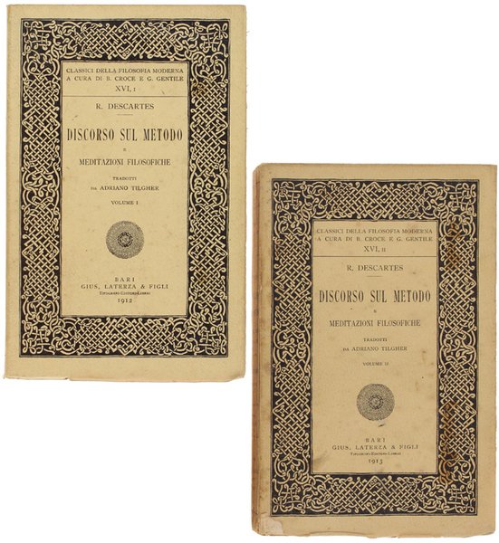 DISCORSO SUL METODO E MEDITAZIONI FILOSOFICHE tradotti da Adriano Tilgher. Volume I - Volume II.