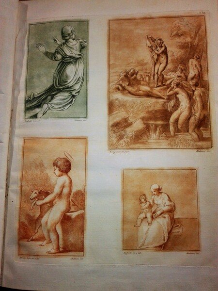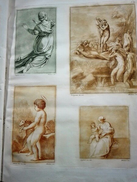 in Folio (cm. 60) mz. pelle coeva, con 47 tavole numerate (di 50) incise all'acquatinta da Mulinari (1740 circa - 1795 circa) allievo di Andrea Scacciati. Le tavole riproducono circa 229 disegni (in seppia, sanguigna, ocra, verde ecc.). Bel frontesp. inciso. Fresca e rara edizione su carta pesante. Brunet, III-1938. Cicognara, 3454. Mancano le tavole n. 7, 9, 21 peraltro ottimo esempl.