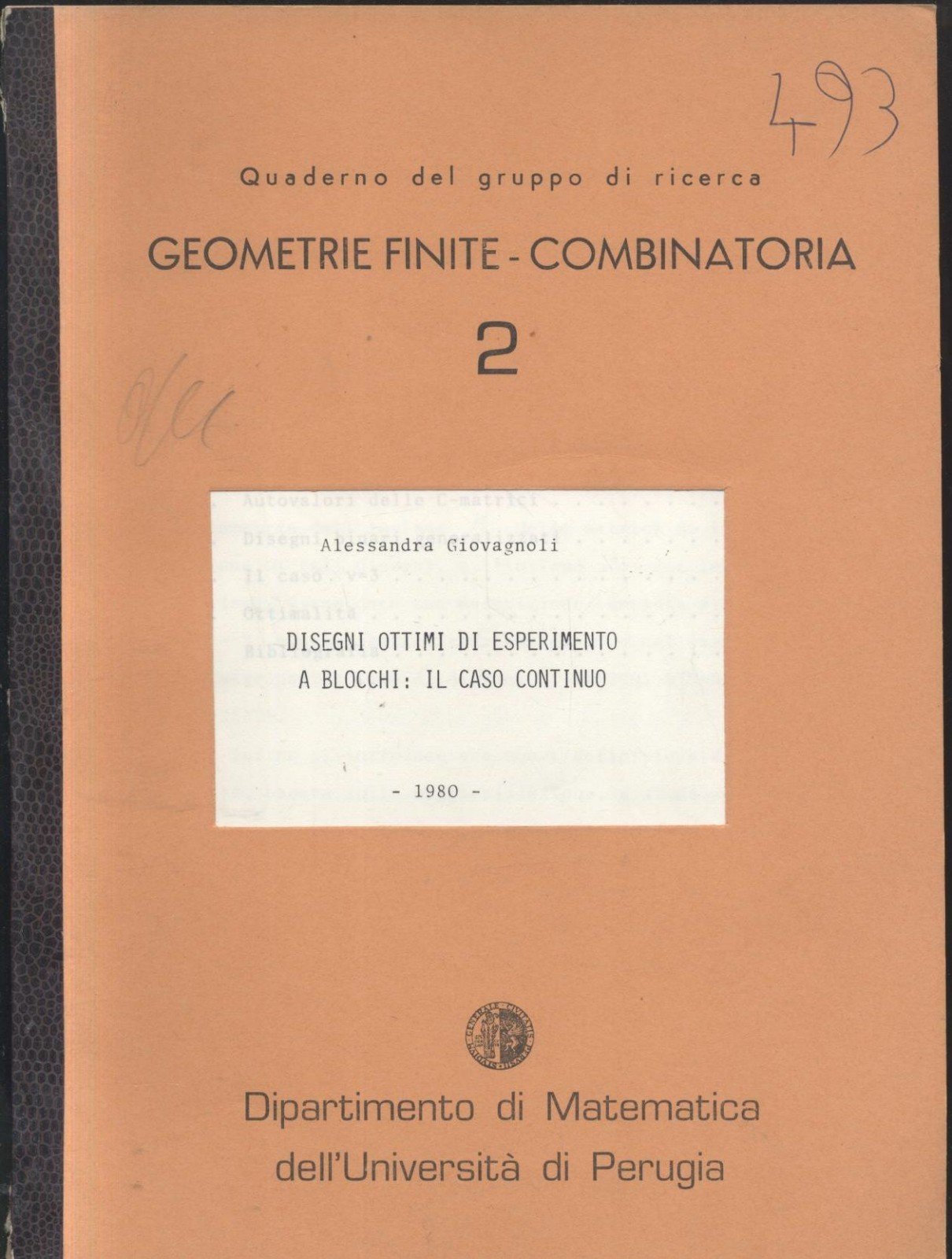 DISEGNI OTTIMI DI ESPERIMENTI A BLOCCHI IL CASO CONTINUO Giovagnoli 1980 LIBRO