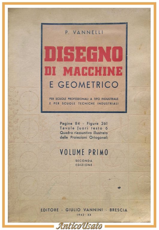 DISEGNO DI MACCHINE E GEOMETRICO di Vannelli 2 volumi 1942 Giulio Vannini Libro