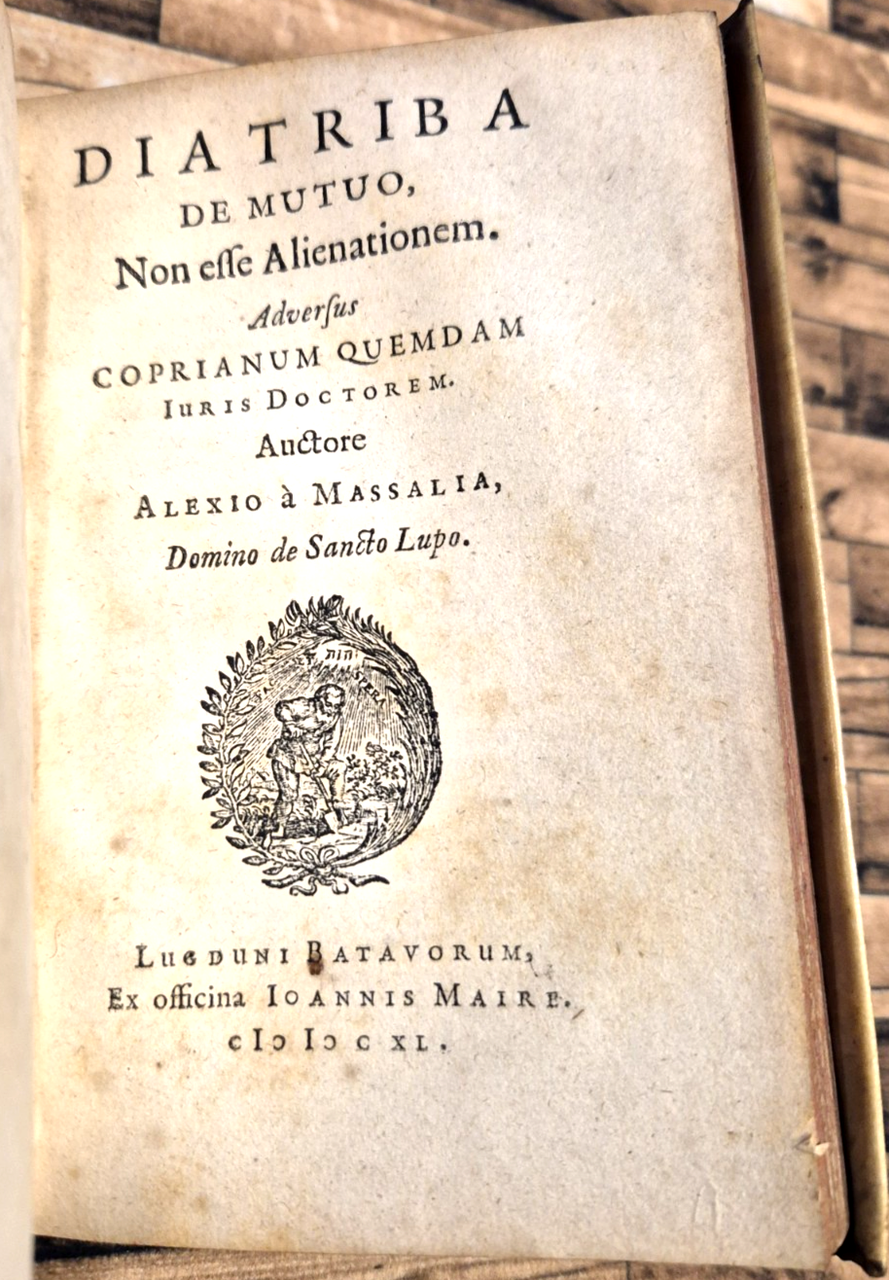 DISSERTATIO DE FOENORE TRAPEZITICO in tres libros divisa di Claudio Salmasio + DIATRIBA DE MUTUO NON ESSE ALIENATIONEM di Alexio a Massalia.