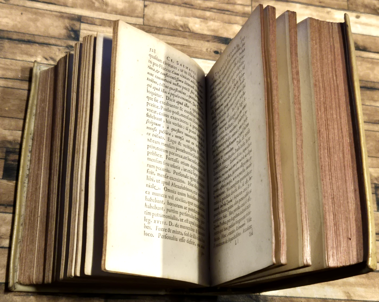 Lugduni Bataviorum, Officina Ioannis Maire, 1640. (CIV), 818, (107) + 202 Pagine, vignetta e titoli in rosso e nero al frontespizio della prima opera. Copertina coeva in tutta pergamena con titoli manoscritti al dorso. Dimensioni: 10 x 16,5 cm. Stato di conservazione: molto buono (fioriture).