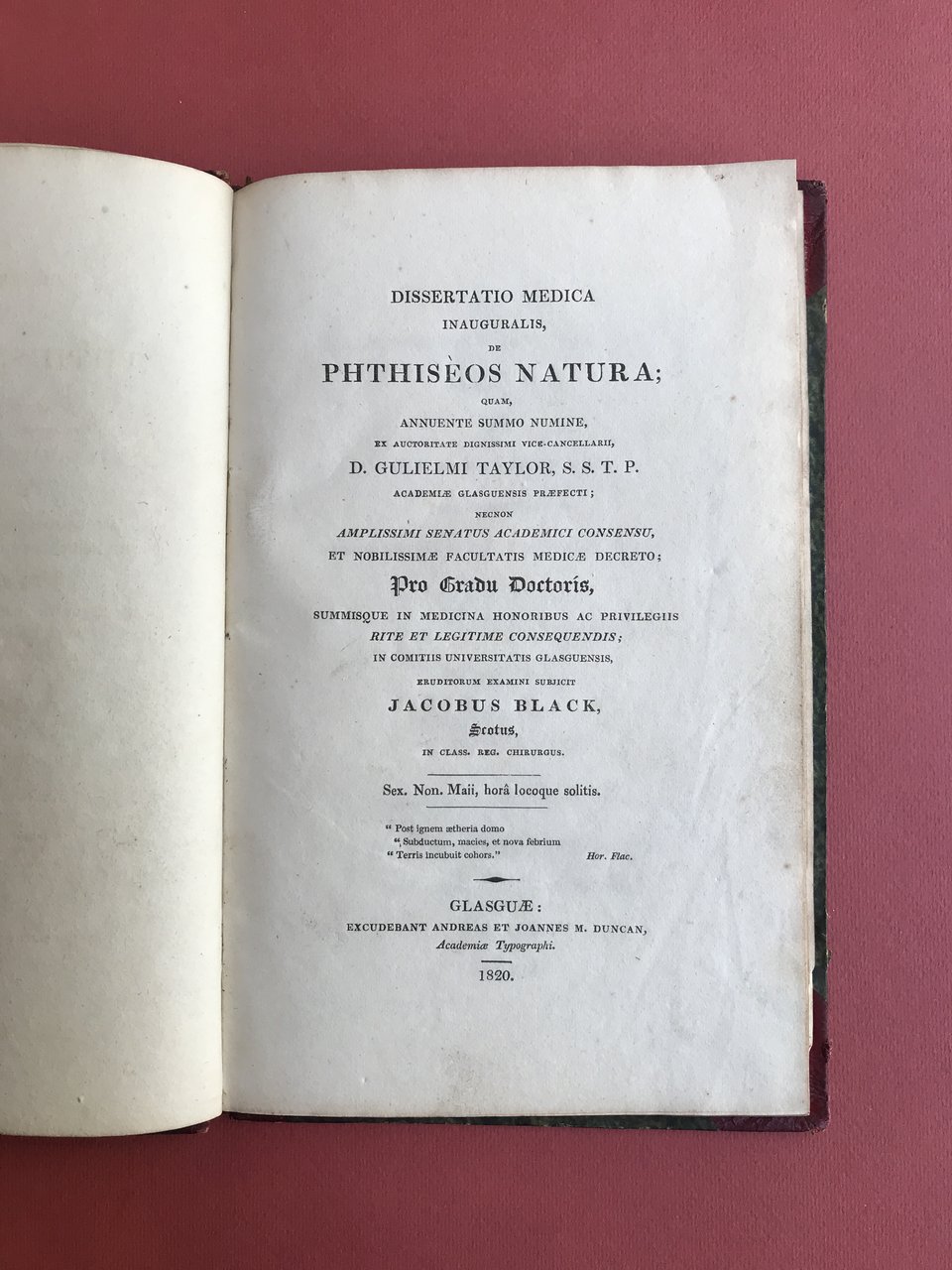 Dissertatio medica inauguralis de phthiseos natura quam annuent summo numine D. Gulielmi Taylor. eruditorum examini subijcit Jacobus Black