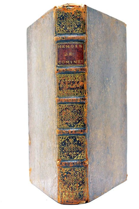 XXXXIV. 5 feuillets. 1 feuillet blanc. 560 pages. 2 feuillets. (19x13 Cm). Reliure d'époque, plein veau fauve clair, dos à nerfs avec filets et fleurons dorés, pièce de titre de maroquin rouge, roulette dorée sur les coupes, tranches brique. Charnière fendue. Coiffes manquantes. Coins émoussés. Plats frottés. Contrefaçon belge de l'édition originale française de 1649, il y a eu plusieurs rééditions des contrefaçons. Bien que souvent joint aux Mémoires de Philippe de Commynes, le texte en est indépendant. Rousseurs. Papier bruni. Quelques taches.