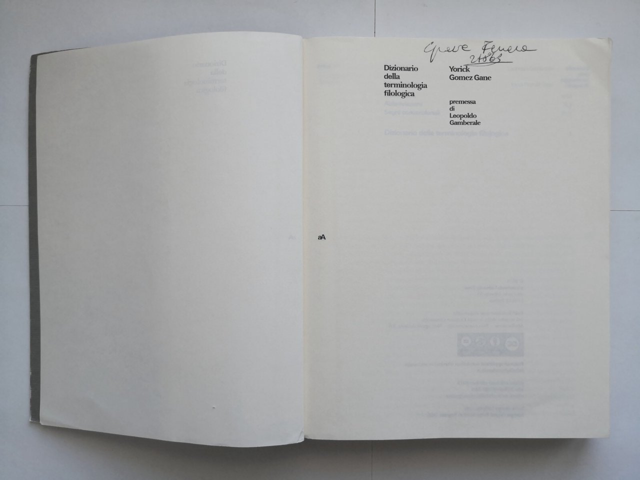 DIZIONARIO DELLA TERMINOLOGIA FILOLOGICA di Yorick Gomez Gane.