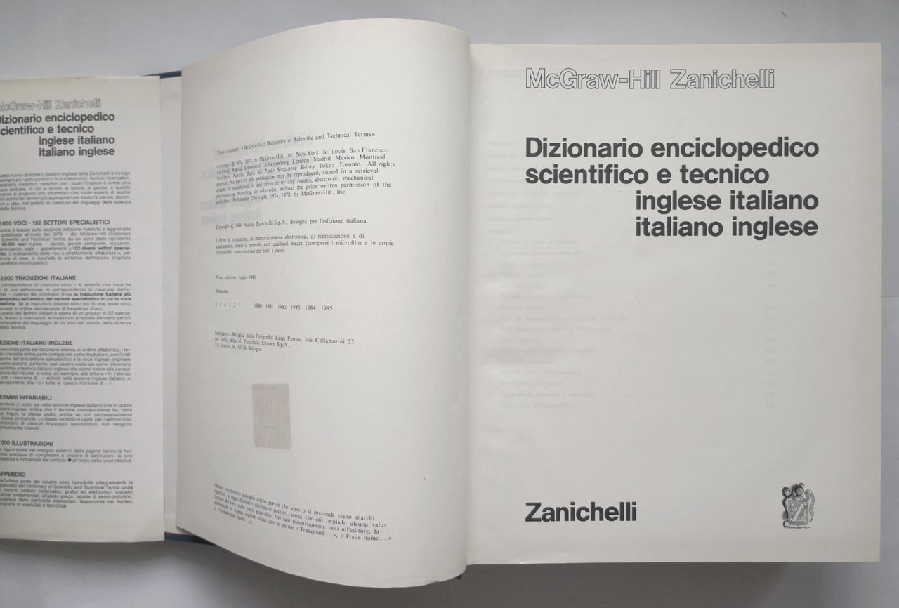 DIZIONARIO ENCICLOPEDICO SCIENTIFICO E TECNICO INGLESE ITALIANO 1985 Zanichelli