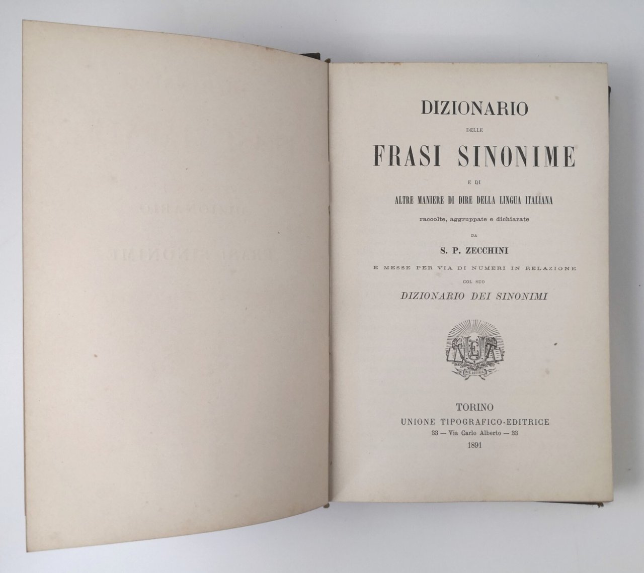 DIZIONARIO delle FRASI SINONIME e di Altre maniere di dire della lingua Italiana raccolte aggruppate e dichiarate da S. P. Zecchini e messe per via di numeri in relazione col suo dizionario dei sinonimi.
