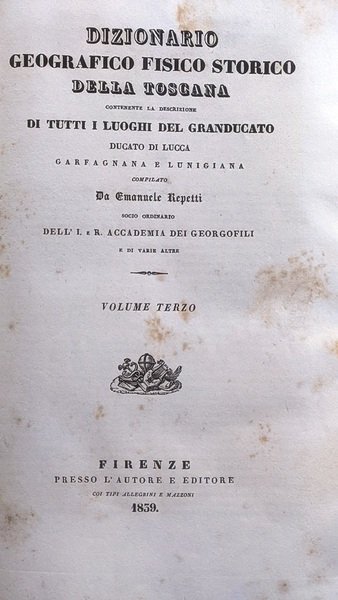 Dizionario Geografico Fisico Storico della Toscana contenente la descrizione di tutti i luoghi del Granducato, Ducato di Lucca, Garfagnana e Lunigiana