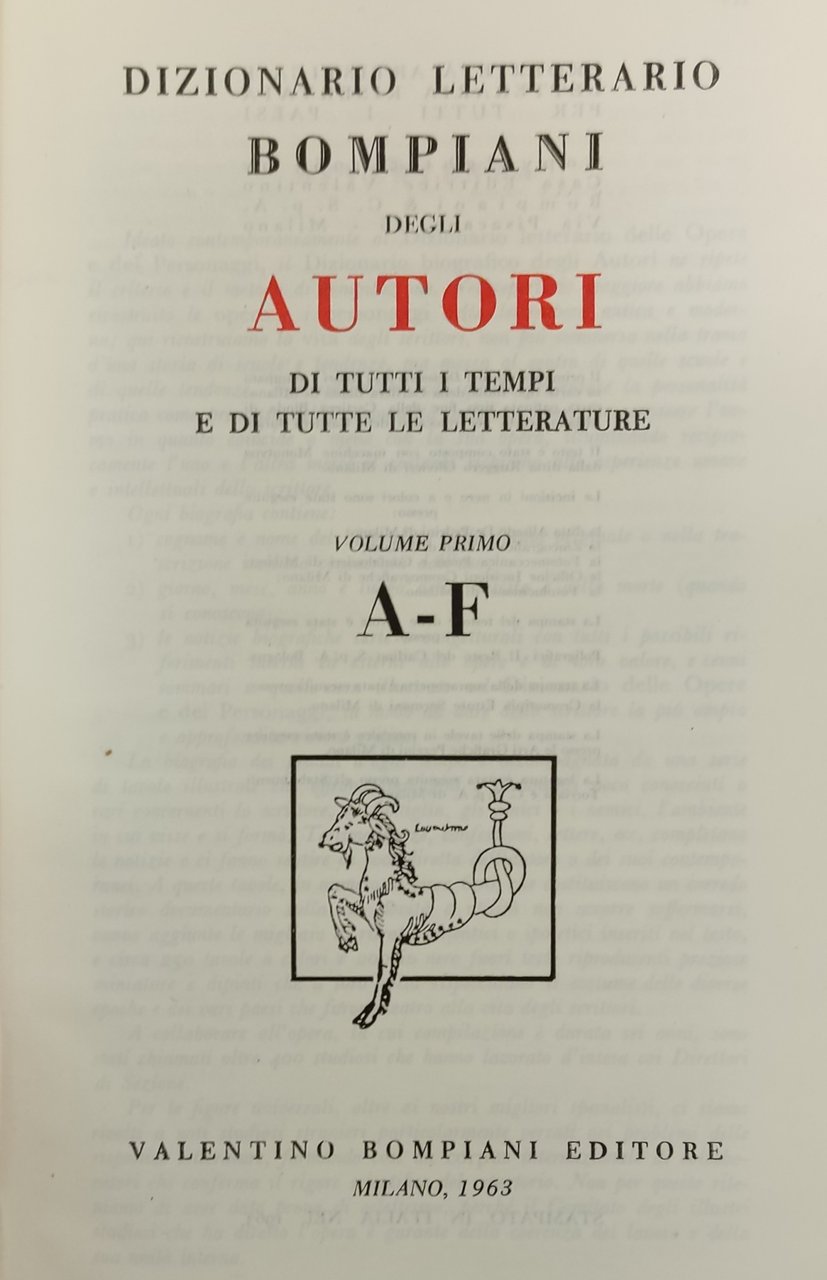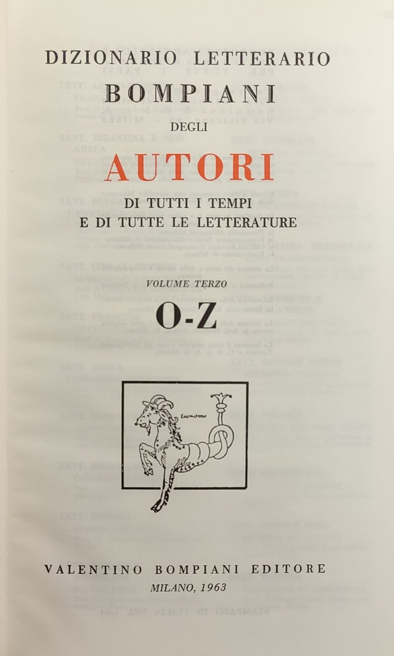 DIZIONARIO LETTERARIO BOMPIANI DEGLI AUTORI DI TUTTI I TEMPI E DI TUTTE LE LETTERATURE