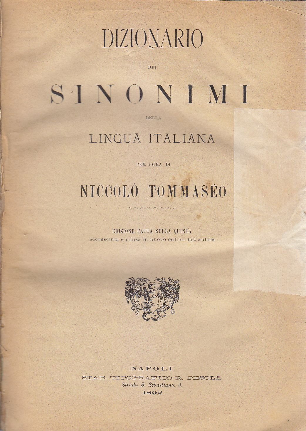 DIZIONARIO SINONIMI DELLA LINGUA ITALIANA di NICCOLO' TOMMASEO 1892 libro antico