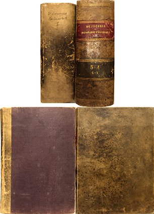 Opera completa con volume I in mezza pergamena senza tasselli al dorso e volumi II e II legati assieme in pergamena con tasselli al dorso