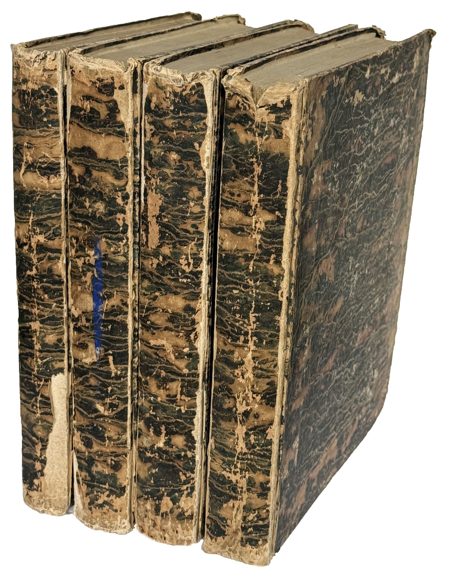 Four volumes, 4to (241x190 mm). Pp. [6], XX, 392 [i.e. 382], [2]; [8], 378, [2]; [8], 398, [2]; [8], 296. Pages 189-198 of volume 1 omitted in pagination. Lacking the Supplemento of 46 pp. at the end of volume 4. Woodcut ornament on the title pages. Contemporary marbled boards (worn and rubbed). Half title of one volume almost detached, some occasional foxing and staining, volumes slightly loose, a good copy partly printed on lightly blue paper.