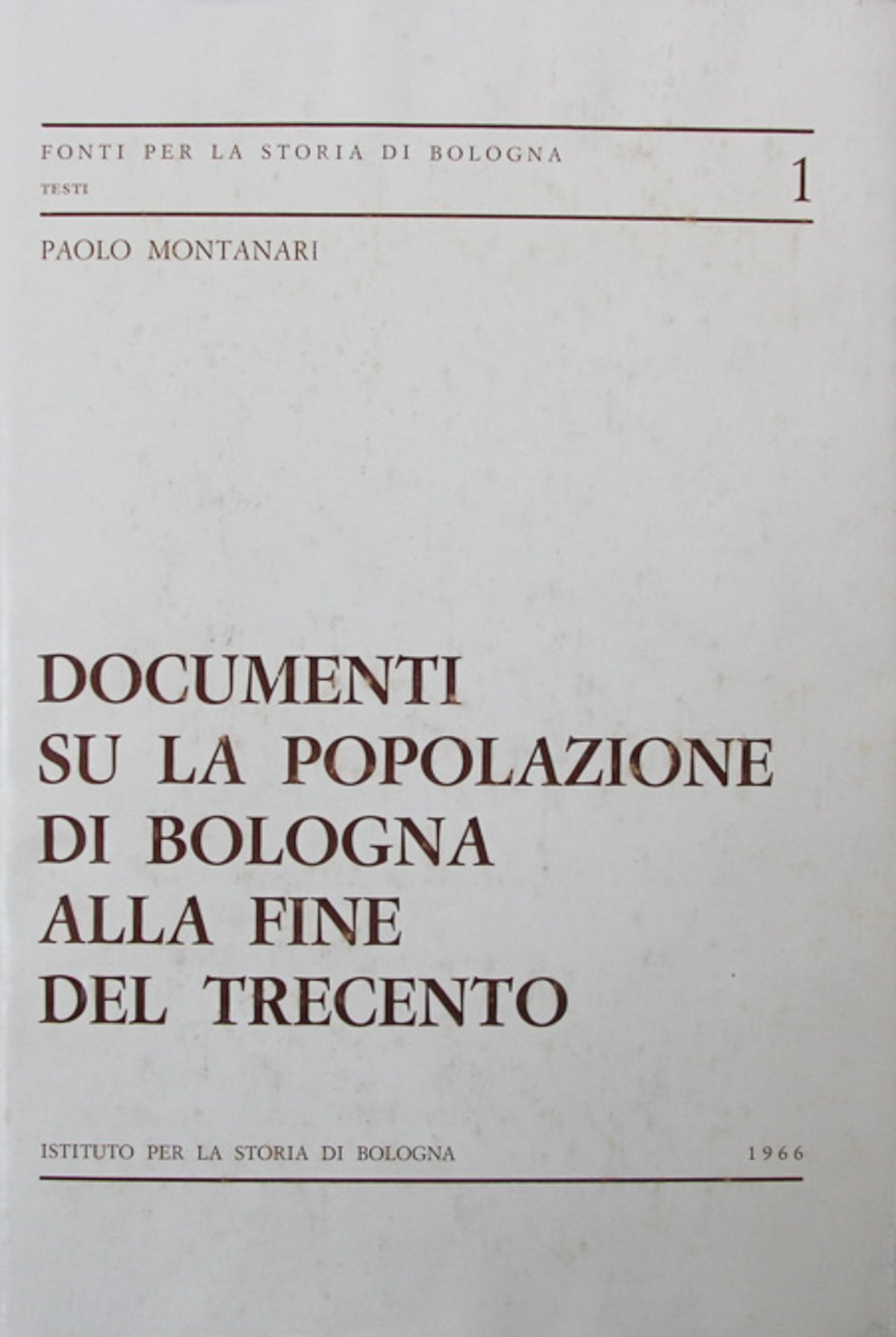 Istituto per la storia di Bologna, 1966, in 4o, Copertina rigida con sopraccoperta, 216 pp., ill. in nero f.t., Coll. Fonti per la storia di Bologna. Testi, 1. 945.411 - LOC In Quarti ( 24-30cm ) Ottimo (Fine) Ottimo
