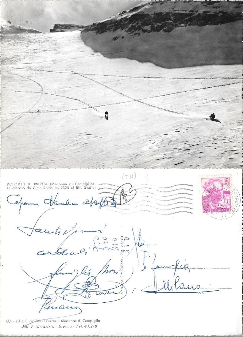 Dolomiti del Brenta. La discesa da Cima Roma al rif. Graffer. Viaggiata 1963