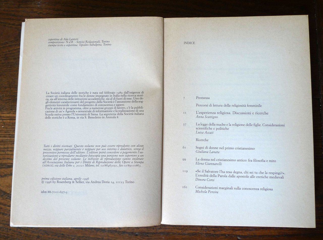 Società Italiana delle Storiche,DONNE SANTE SANTE DONNE.Esperienza religiosa e storia di genere.Rosenberg & Sellier, Torino 1996,prima edizione italiana: aprile 1996,brossura, 21x15 cm., pp.334,ISBN: 88-7011-657-3,peso: g.500cod.9346CONDIZIONI DEL LIBRO: buone,imperfezioni alla copertina,pagine ingiallite,poche sottolineature e note a matita
