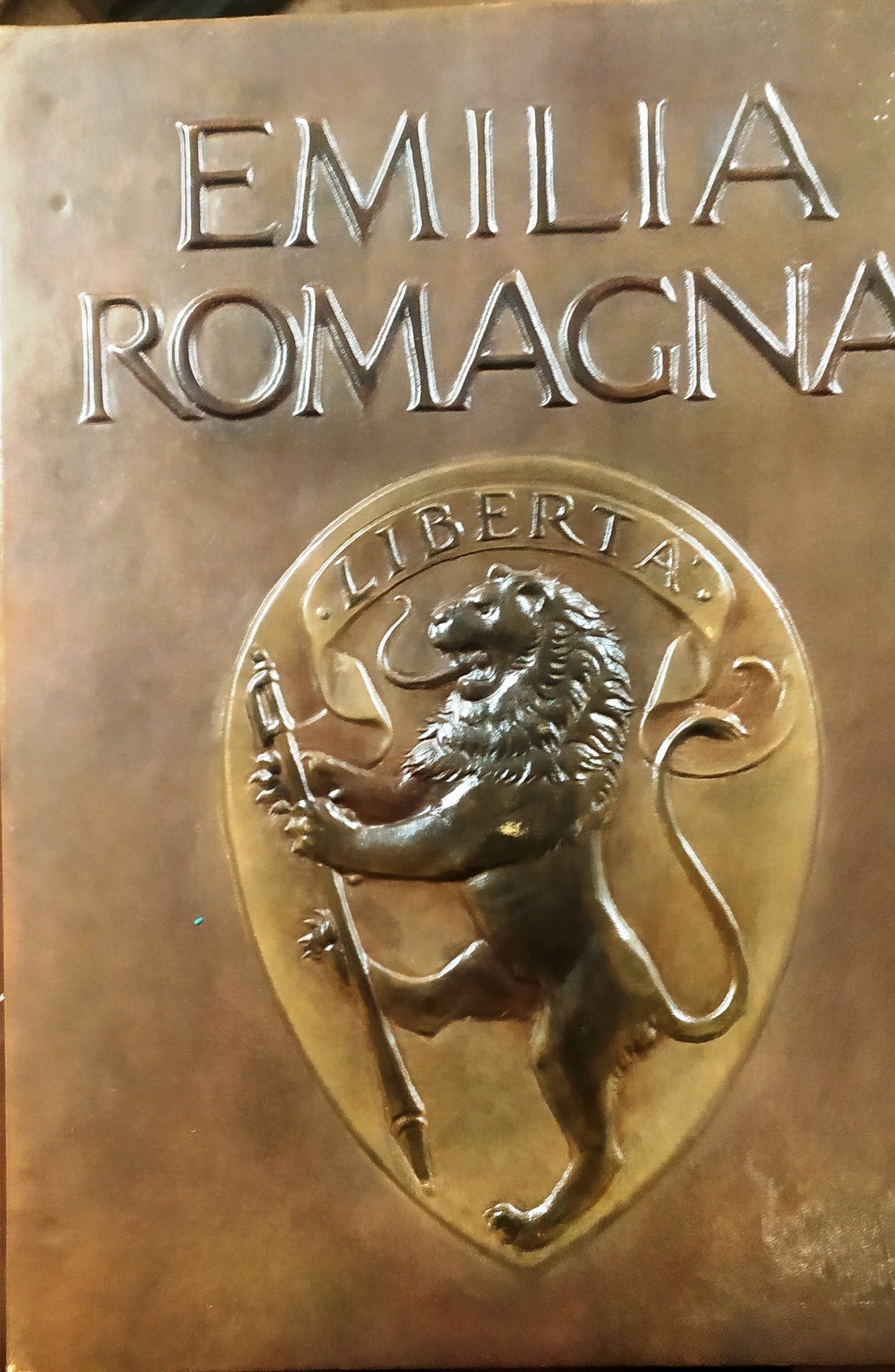 in Folio (cm. 42 x 32) bella legat. in pieno cuoio pregiato, piatto anter. a sbalzo raffig. lo stemma della provincia di Bologna dello scultore Mario Picchi, borchie in metallo al piatto poster., tit. e fregi oro al dorso, entro cofanetto edit. figur. (con lievi fiorit.), pp. 280. Con circa 200 incisioni e disegni e 3 carte ripieg. f.t. Coll. "Le Grandi Regioni". Pregiata edizione a tiratura limitata su carta a mano con barbe (copia n. 341). Ottimo esempl.