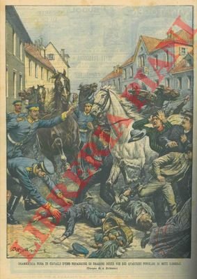 Drammatica fuga di cavalli d'uno squadrone di dragoni nelle vie dei quartieri popolari di Metz.