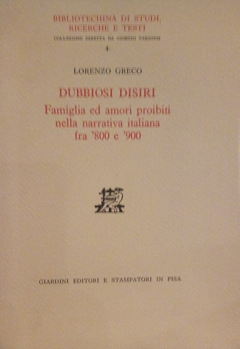 DUBBIOSI DISIRI - FAMIGLIA E AMORI PROIBITI NELLA NARRATIVA ITALIANA FRA '800 E '900