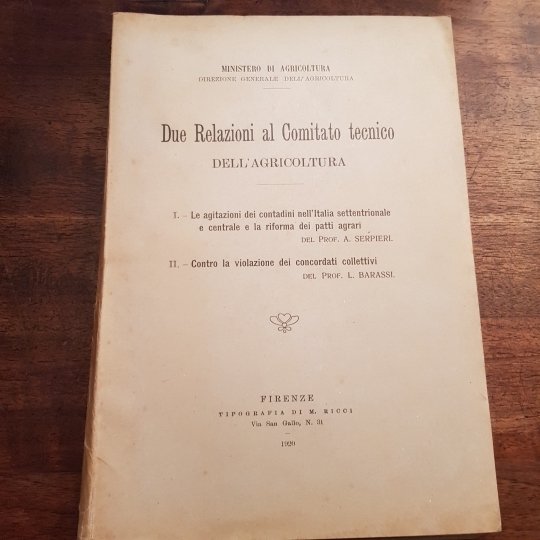 Due relazioni al comitato tecnico dell'agricoltura. I- Le agitazioni dei contadini nell'Italia settentrionale e centrale a la riforma dei patti agrari del prof. Serpieri; II- contro la violenza dei concordati collettivi del Prof. Barassi.