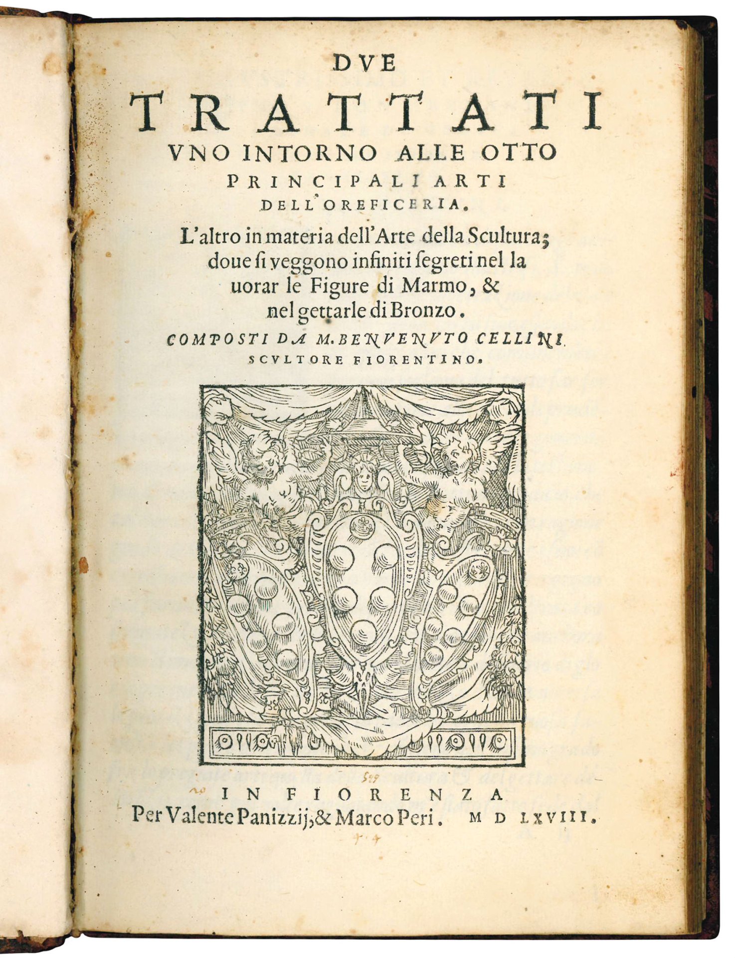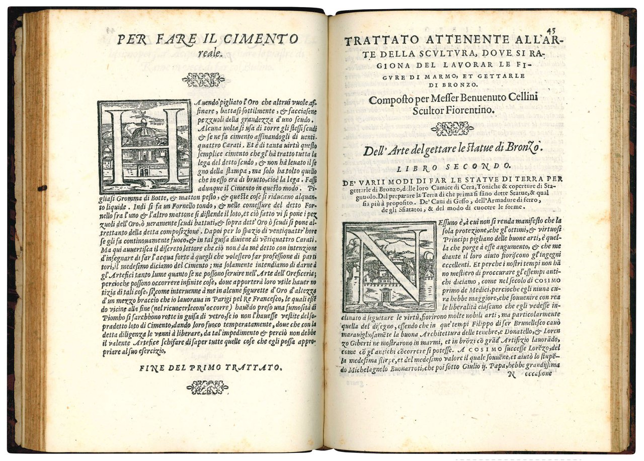 First edition, dedicated to Cardinal Ferdinando de' Medici on 26 February 1568, of Cellini's two treatises on goldsmithing and sculpture, the only work published during his lifetime.