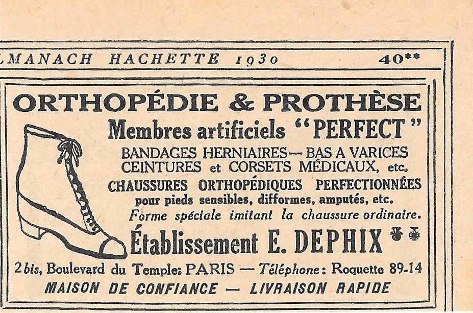 E. Dephix. Orthopedie e prothese. Pubblicita 1930