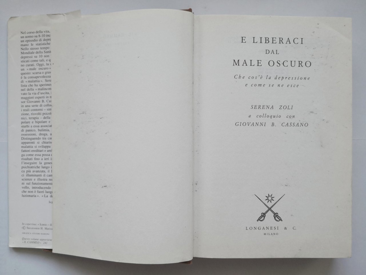 E LIBERACI DAL MALE OSCURO di Serena Zoli 1993 Longanesi libro depressione