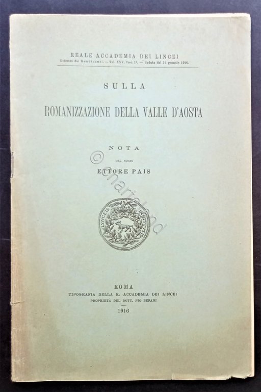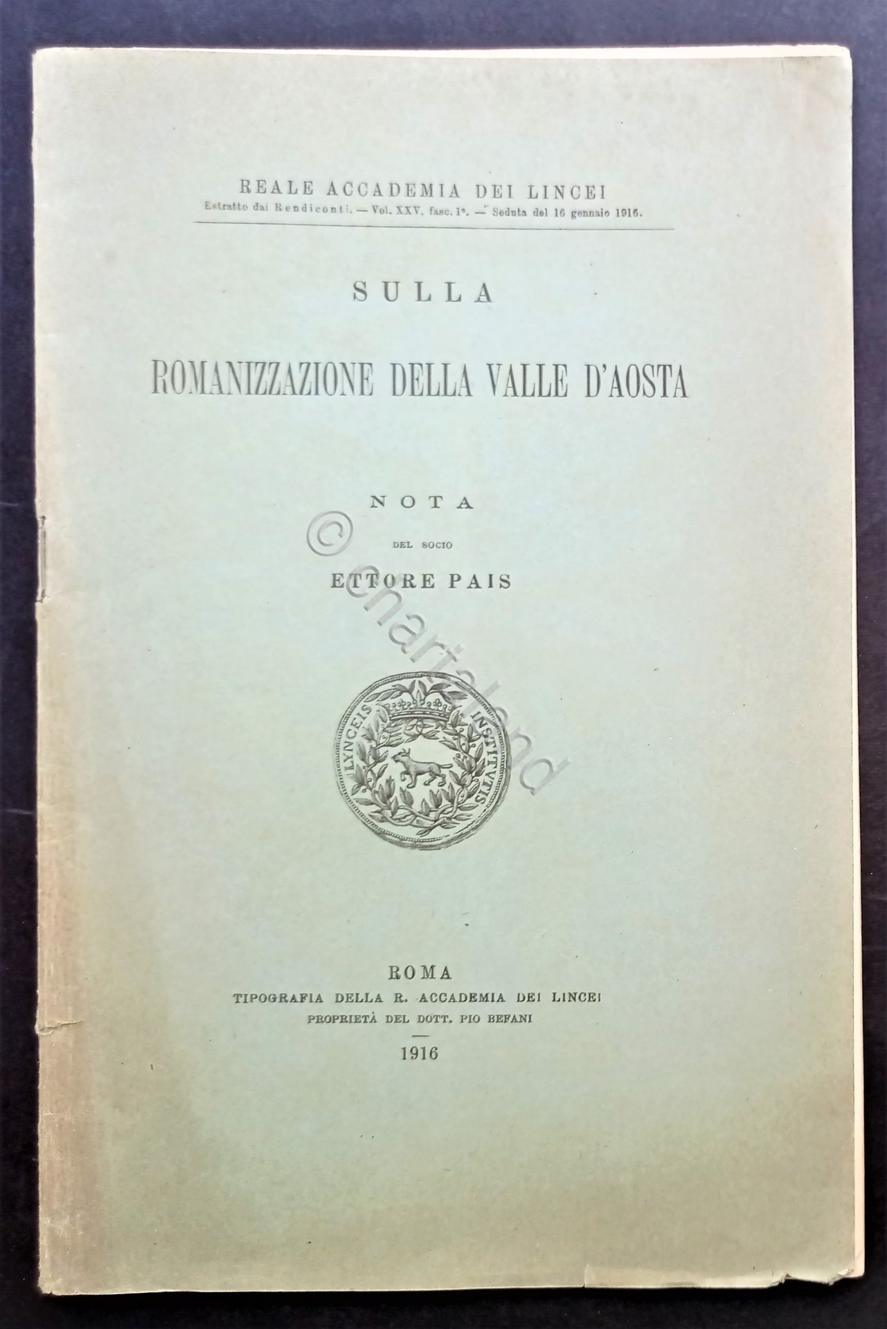 E. Pais - Sulla romanizzazione della valle d'Aosta - ed. 1916 Testo in lingua italiana. Pagine 27 Copertina morbida. Condizioni buone come da foto.