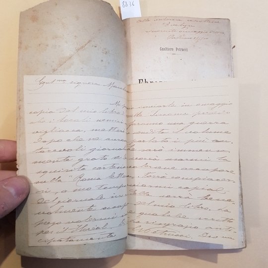 In-8° allungato, pp. 185, (4), brossura editoriale con alcune mancanze alla parte superiore del piatto superiore. Dedica e lettera dell'autore.